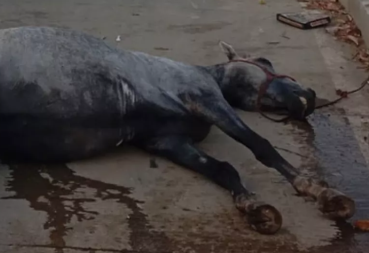 Un caballo colapsó en una zona de alto flujo vehicular y presentaba rastros de sangre y signos que, según testigos denunciaron, sobre el deceso del animal, se debía a tratos crueles. Imágenes difundidas en redes sociales muestran al animal tendido sobre el asfalto, con una cuerda atada al cuello y un rastro de líquido oscuro extendiéndose por la vía, mientras transeúntes y motociclistas observaban la escena.