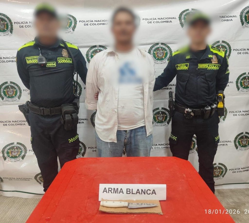 Al abordar al presunto agresor, quien se encontraba en estado alterado, las unidades policiales le hallaron en su poder un arma blanca tipo cuchillo, se le dio a conocer sus derechos como persona capturada y fue dejado a disposición de la autoridad judicial competente por el delito de violencia intrafamiliar.