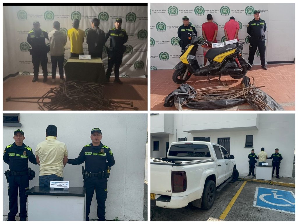Primer caso, en la autopista Floridablanca–Piedecuesta, a la altura del lote de Metrolínea, unidades del CAI Villabel capturaron a tres personas en flagrancia cuando sustraían 30 varillas de acero y 2 tubos de andamio, utilizando una motocicleta.