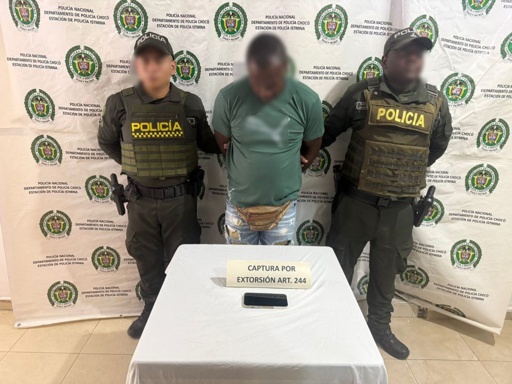 Istmina. La Policía Nacional desplegó un operativo que permitió la captura en flagrancia de un hombre que presuntamente exigía dinero a un ciudadano a cambio de devolverle su teléfono celular.