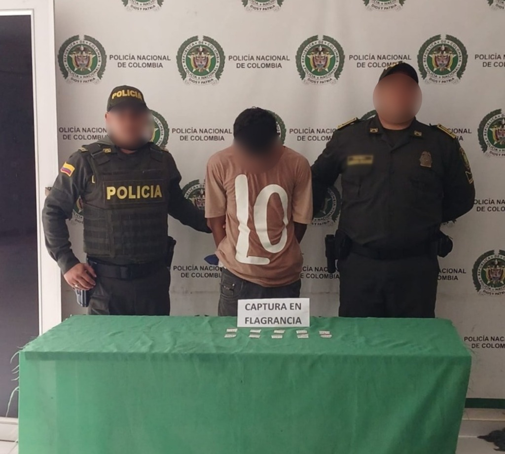 La Policía Metropolitana de Montería reporta la captura en flagrancia de un ciudadano de 21 años por el delito de tráfico, fabricación o porte de estupefacientes, en el barrio Cantaclaro, sector conocido como “Puerco Sucio”.