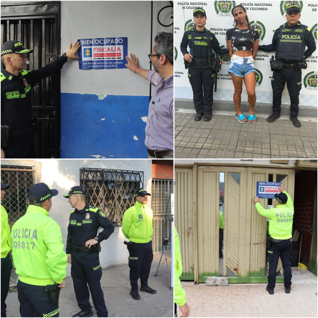 Dos operativos de la Policía Nacional, en coordinación con la Fiscalía 61 Especializada de Extinción del Derecho de Dominio de Cali, permitieron la extinción de dominio a 16 bienes inmuebles y dos vehículos que fueron utilizados por grupos delincuenciales organizados para la ejecución de actividades criminales en los barrios Desepaz y Simón Bolívar de la capital del Valle.