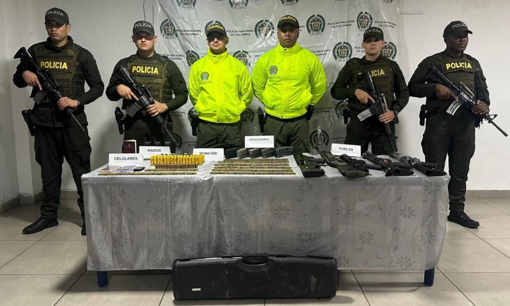 Durante el procedimiento fueron incautados 3 fusiles M4 y 2 escopetas semiautomáticas, así como 534 cartuchos de munición calibre 5.56, 9 mm y calibre 24 para escopeta; se hallaron 5 proveedores de fusil, 1 proveedor de escopeta y 5 equipos de comunicación y tecnológicos, entre ellos 3 radios, un celular y una tablet.