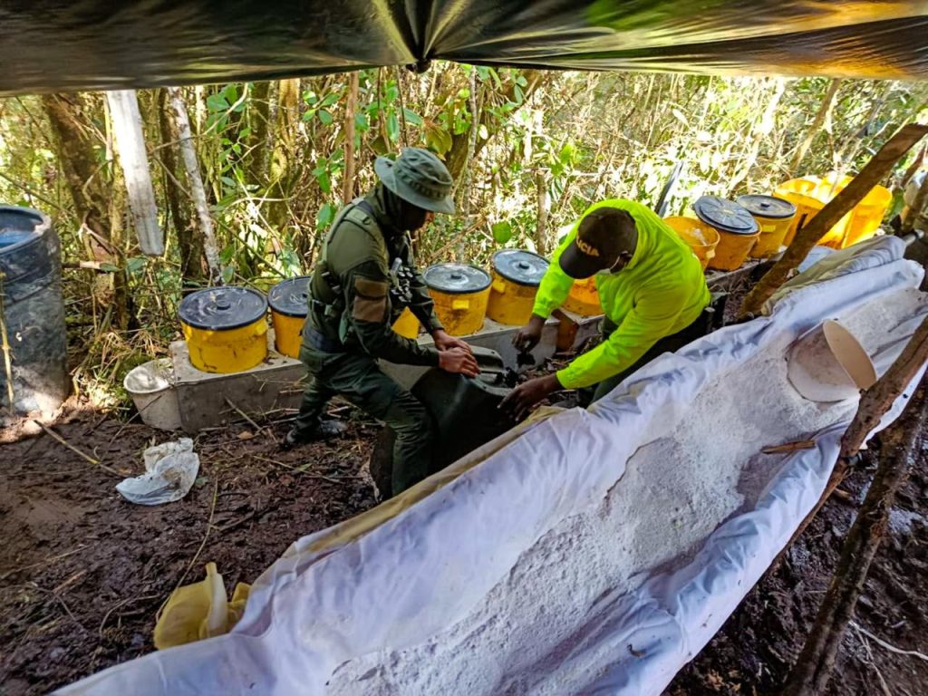 En la operación, desarrollada por soldados de la Cuarta Brigada, fueron hallados 350 kilogramos de clorhidrato de cocaína, 975 galones de la sustancia en suspensión, 262 galones de insumos químicos líquidos y diversas herramientas utilizadas para el procesamiento de la droga.